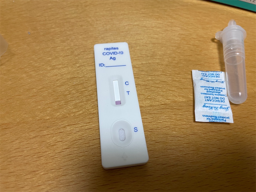 Cにラインが入って、Tにラインのある(陽性)なし(陰性)で感染状況がわかるのだとか。Sは検査する液体を入れるところ。