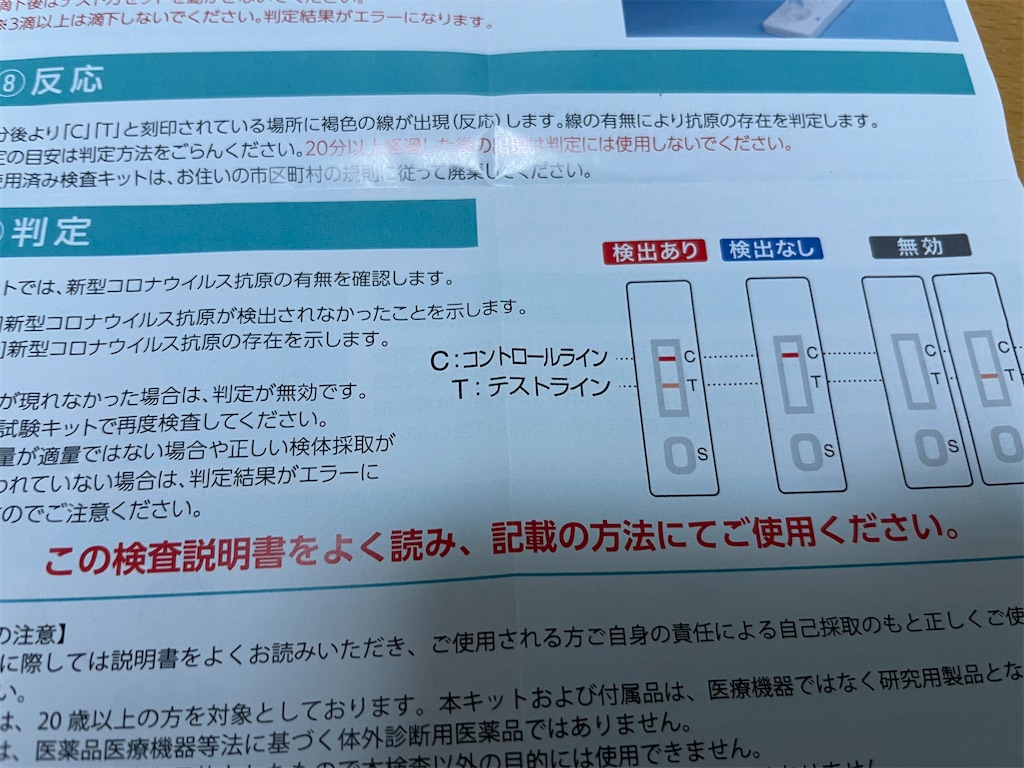正直にいうと説明書が結構わかりにくかった。いろんな検査キットがあるんだけど、だいたい一緒みたい。説明書によると鼻水か唾液かで測定ができるとのこと。