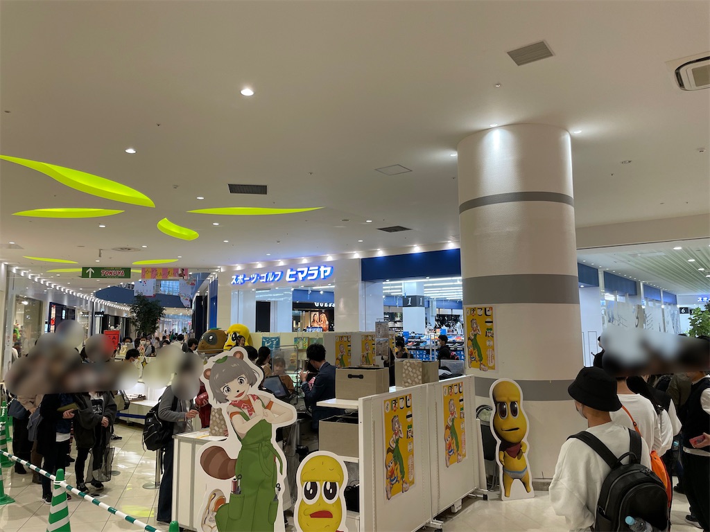展示会の周り一周分くらい待ってる。ぽこピーさんめちゃくちゃ人気だった。